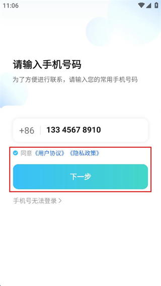 1、進入該應用的手機號輸入頁面,在對應輸入框填寫常用手機號碼,準備推進登錄流程。