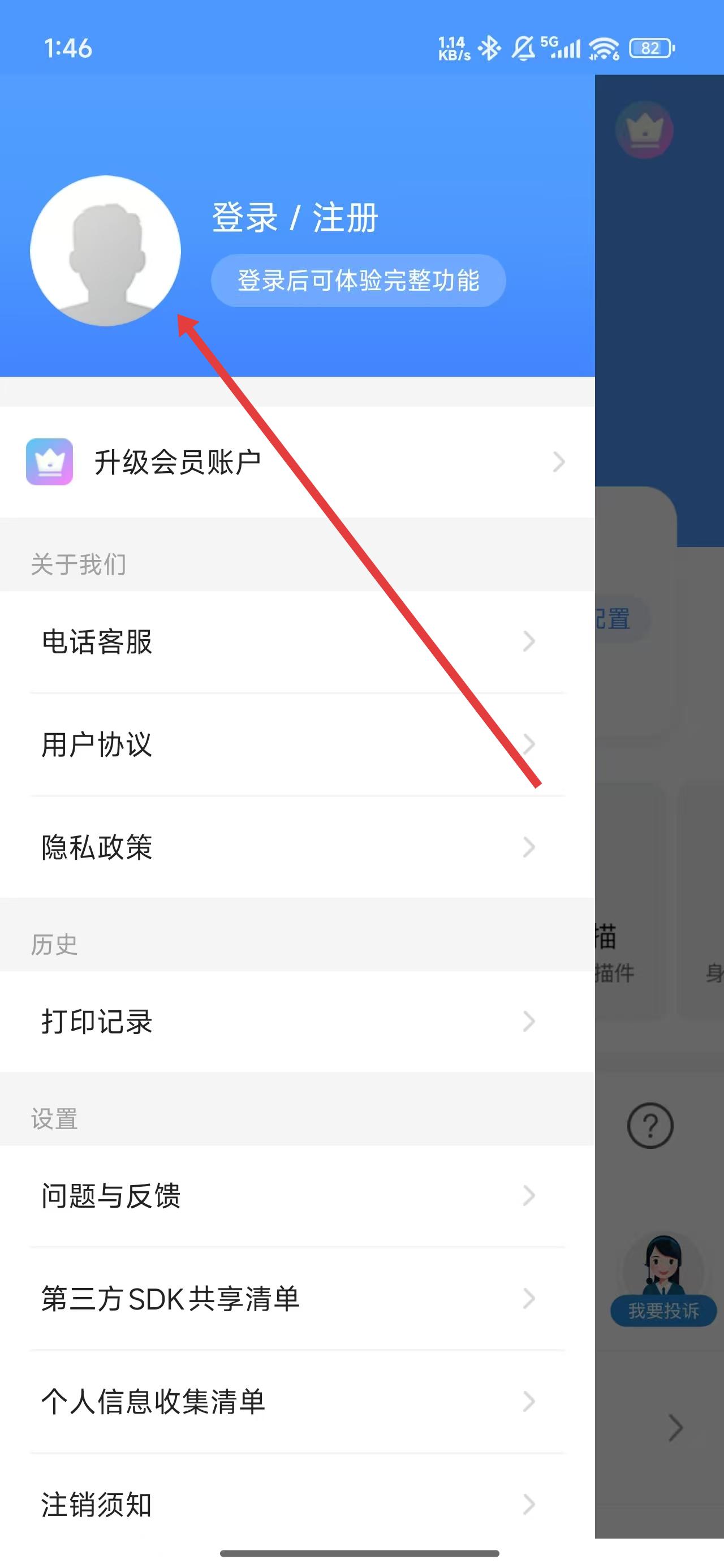 2、可以在展開的側(cè)邊欄中,通過點擊頭像區(qū)域,準備進行登錄操作。