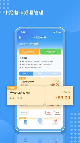 方面面商戶端是一款為商家服務的app,商家在這里可以管理自己的門店,你的經營數(shù)據(jù)和收入這里都可以查到,不僅如此,軟件還提供核銷卡券服務,你在方面面app上獲得的卡券可以在這里使用,非常的方便,你還在等什么呢,快點來下載體驗吧!