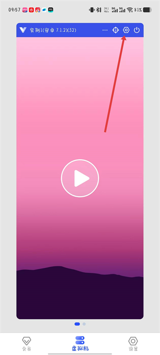 2、進(jìn)入創(chuàng)建好的虛擬機(jī)界面,點(diǎn)擊右上角的設(shè)置圖標(biāo),進(jìn)入設(shè)置頁面。