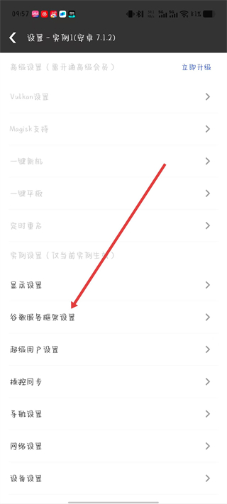 3、找到谷歌服務(wù)框架設(shè)置選項(xiàng),點(diǎn)擊進(jìn)入谷歌服務(wù)框架設(shè)置頁面。