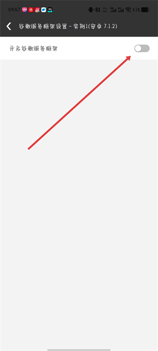 4、找到開啟谷歌服務(wù)框架選項(xiàng),點(diǎn)擊其右側(cè)的開關(guān)按鈕將其開啟。