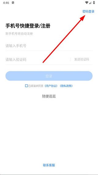 1、在中遠(yuǎn)博途app登錄界面,點(diǎn)擊右上角密碼登錄,進(jìn)入密碼登錄界面。