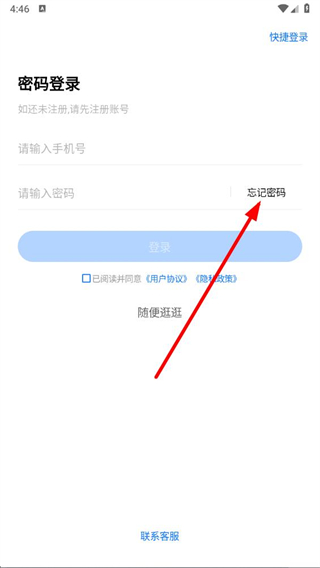 2、在密碼登錄界面,點(diǎn)擊忘記密碼,進(jìn)入重置密碼界面。