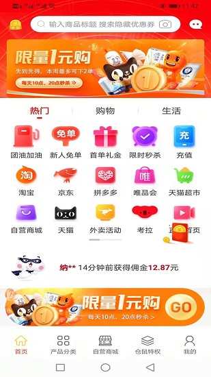 倉鼠俠app-匯聚大量品牌 優(yōu)質(zhì)產(chǎn)品 網(wǎng)購達(dá)人的省錢app 品牌代理的專屬app 紅包 大額優(yōu)惠卷 領(lǐng)不停 分享賺 自購省。下載倉鼠俠app歡樂購物 快樂開啟。