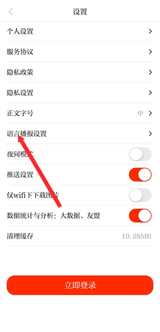 3、在設(shè)置的界面里,點(diǎn)擊語(yǔ)音播報(bào)設(shè)置,進(jìn)入語(yǔ)音播報(bào)參數(shù)調(diào)整頁(yè)面。