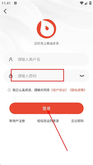 1、打開糧油多多APP,點(diǎn)擊底部導(dǎo)航欄我的選項(xiàng)。