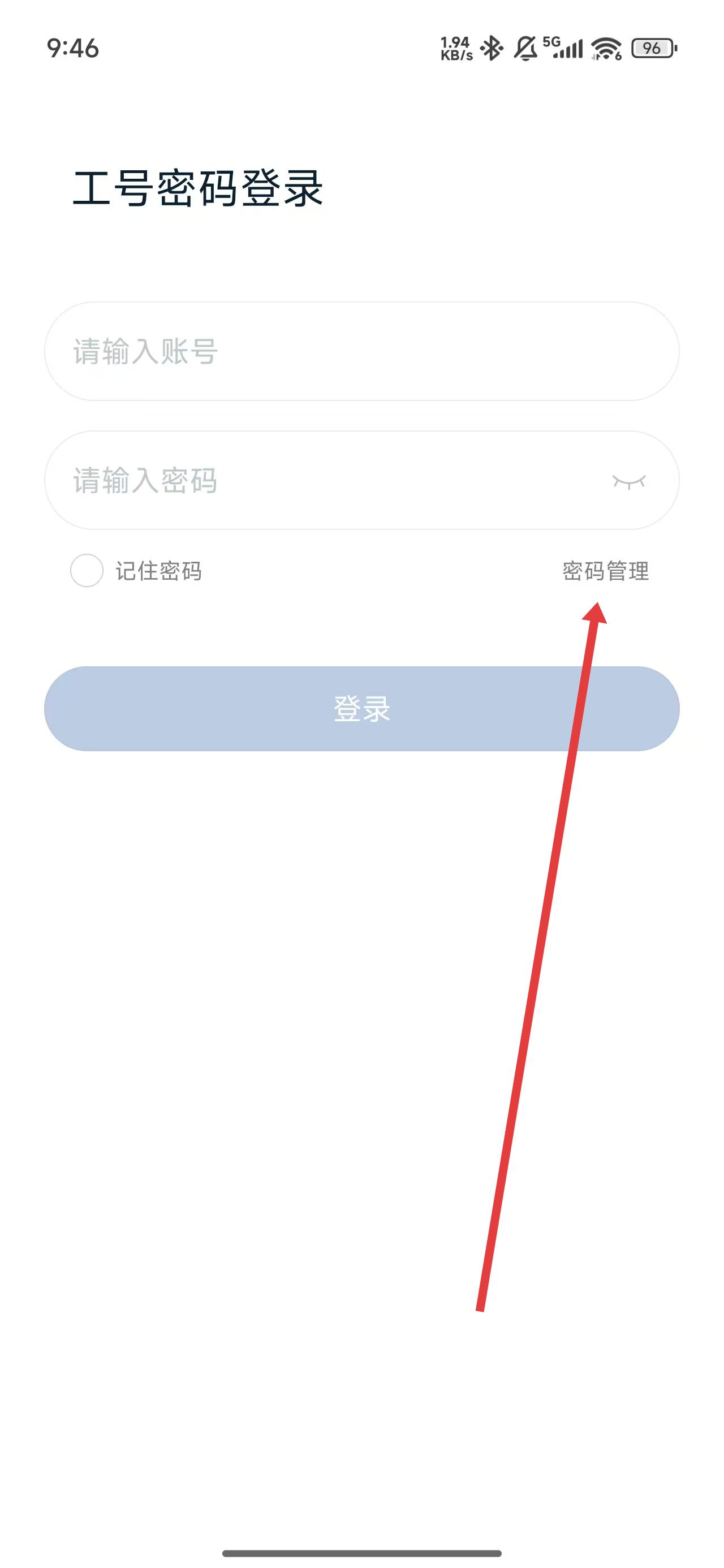 2、在進(jìn)入到登錄頁(yè)面時(shí),若忘記密碼可以點(diǎn)擊密碼管理按鈕找回。