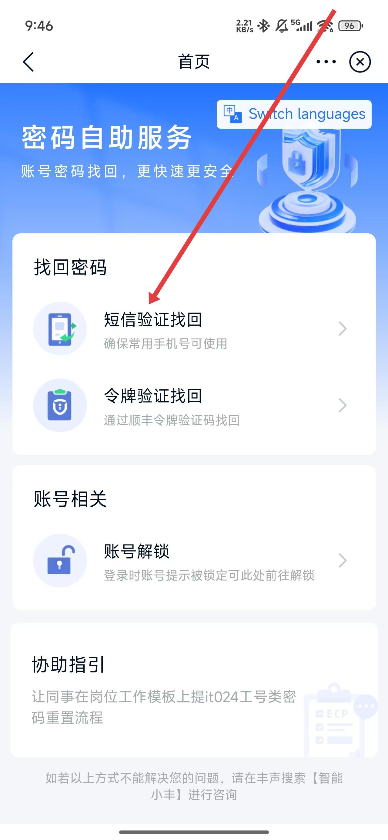 3、在跳轉(zhuǎn)到首頁(yè)頁(yè)面中后,可以選擇點(diǎn)擊使用短信驗(yàn)證找回方式找回。