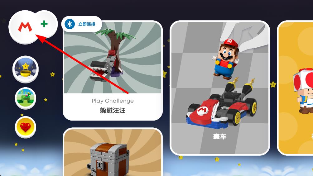 1、打開樂高超級(jí)馬里奧app,點(diǎn)擊界面左上角帶有字母標(biāo)識(shí)的按鈕。
