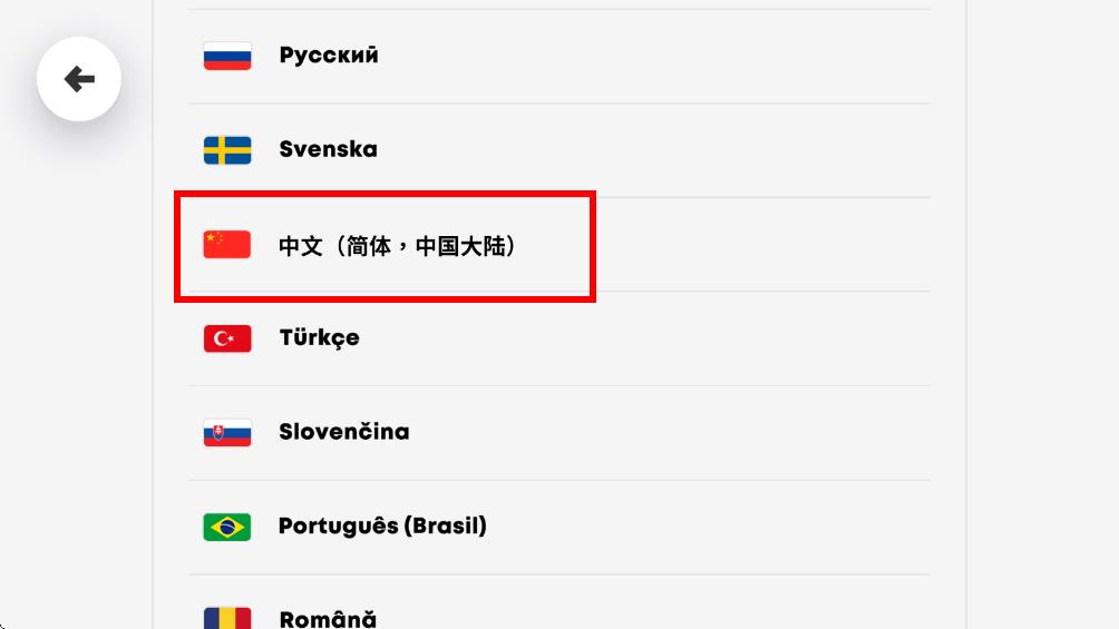 3、在語言列表中,找到中文簡(jiǎn)體中國大陸的選項(xiàng)。