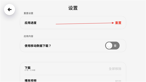 3、進(jìn)入設(shè)置頁面之后,點(diǎn)擊應(yīng)用重置選項(xiàng)。