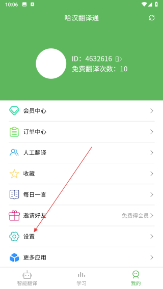 1、打開哈漢翻譯通應用,點擊界面右下角的我的選項,進入個人中心頁面。