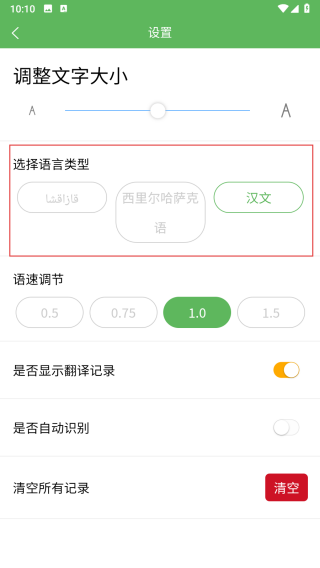 3、在設置界面里,找到選擇語言類型區(qū)域,該區(qū)域有漢文、西里爾哈薩克語等可選項。