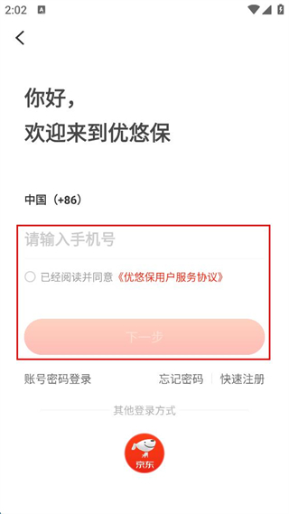 3、輸入手機(jī)號(hào),勾選同意協(xié)議,點(diǎn)擊下一步。
