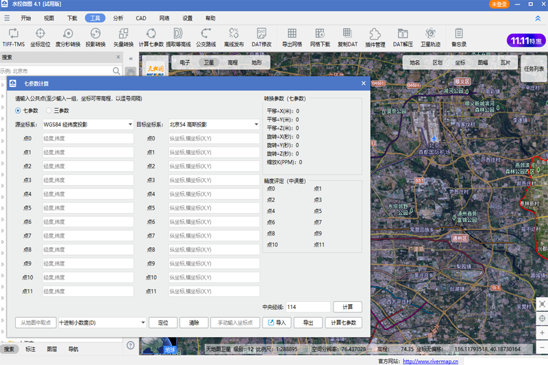 可以通過三組點(diǎn)的源坐標(biāo)和目標(biāo)坐標(biāo),進(jìn)行七參數(shù)計(jì)算,即XYZ三個(gè)方向的平移和旋轉(zhuǎn)及縮放等參數(shù)計(jì)算。