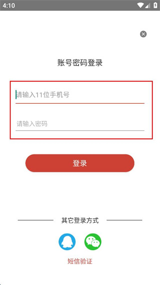3、在賬號(hào)密碼登錄界面輸入手機(jī)號(hào)和密碼,準(zhǔn)備進(jìn)行登錄操作。
