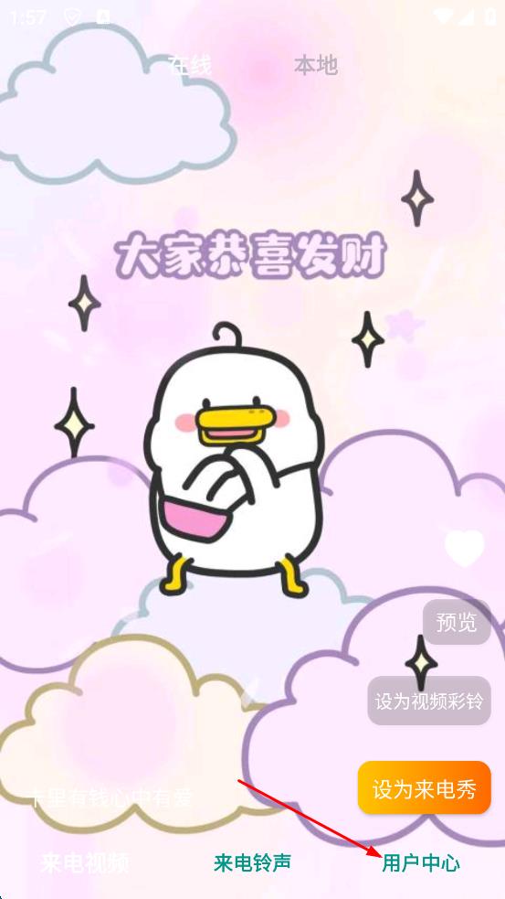 1、打開(kāi)來(lái)電秀軟件,在軟件界面找到“用戶中心”選項(xiàng),點(diǎn)擊該選項(xiàng)進(jìn)入用戶中心頁(yè)面。