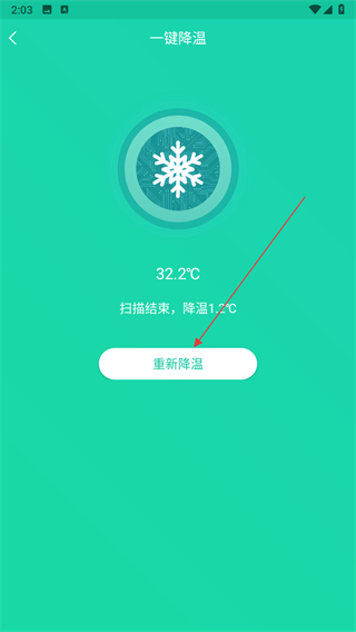 4、觀看完后,APP自動(dòng)對手機(jī)溫度進(jìn)行掃描并執(zhí)行降溫操作,點(diǎn)擊重新降溫按鈕即可再次降溫。