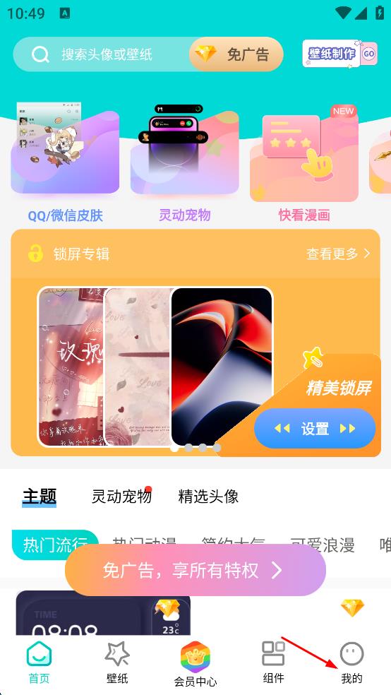 1、打開該壁紙類APP,點擊首頁右下角我的。