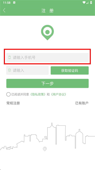 2、進入注冊頁面后,在輸入框中填寫手機號碼。