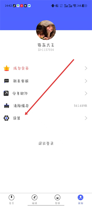 1、打開素材瀏覽器APP,進入個人頁面后點擊設(shè)置選項。