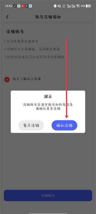 4、在提示框中點擊確認注銷按鈕,即可完成賬號注銷操作。