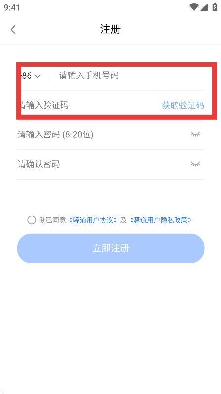 3、填寫需要注冊的手機(jī)號,獲取驗證碼并填入驗證碼。