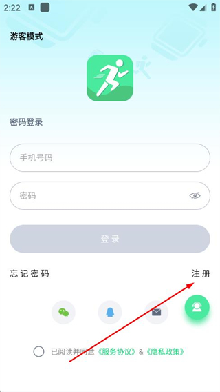 1、打開WearPro APP,在登錄頁面點擊注冊,進入注冊頁面。