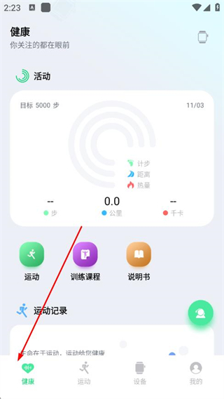 3、即可完成注冊操作,進入APP健康頁面開始使用。