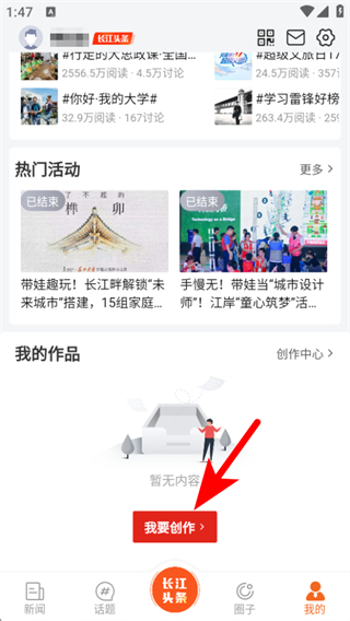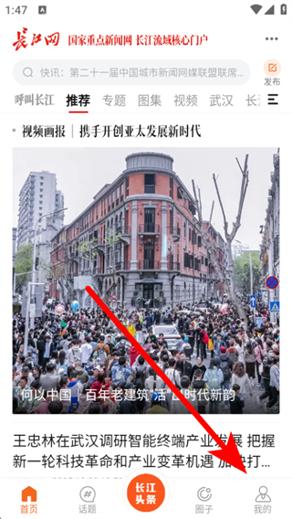 1、打開長江網(wǎng)APP,點(diǎn)擊底部導(dǎo)航欄的我的,進(jìn)入個人頁面。
