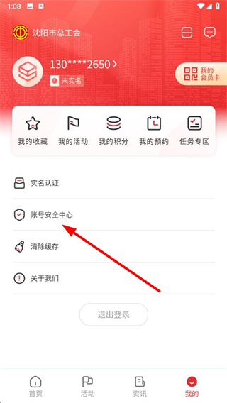 2、在個人頁面中,找到賬號安全中心選項并點擊進(jìn)入。