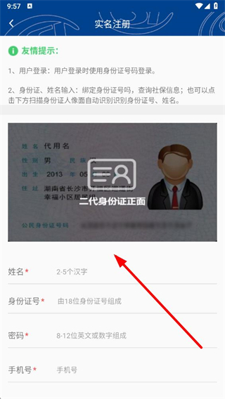 2、在實名注冊頁面,按照提示輸入姓名、身份證號、密碼、手機號和確認手機號。