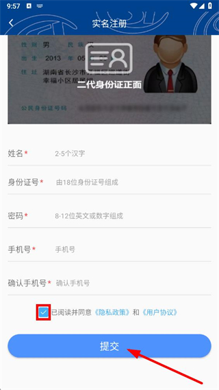 3、信息填寫完成后,勾選已閱讀并同意協(xié)議,點擊提交按鈕完成注冊。