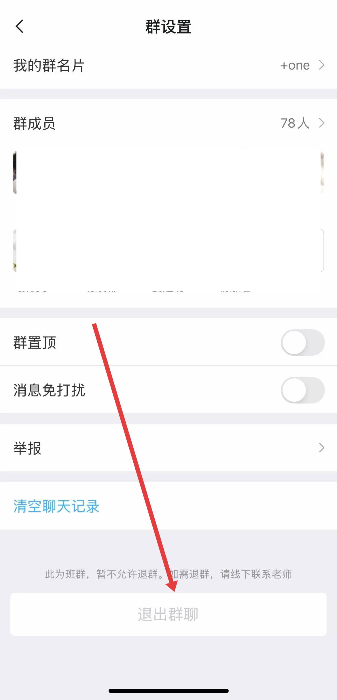3、在群設(shè)置頁面,下滑找到退出群聊選項,點擊它按提示操作即可退出。