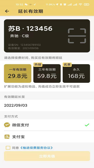 3、提供不同的擴(kuò)展功能續(xù)費(fèi)選項(xiàng),上面給用戶提供了一年、三年以及永久有效的選擇;
