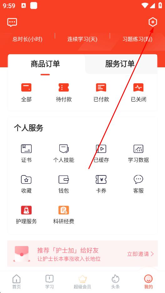 2、進(jìn)入我的頁面后,點(diǎn)擊右上角的設(shè)置圖標(biāo)。
