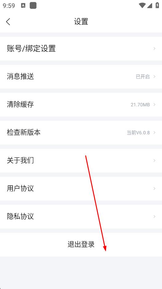 3、在設(shè)置頁面中,點(diǎn)擊最下方的退出登錄選項(xiàng)。