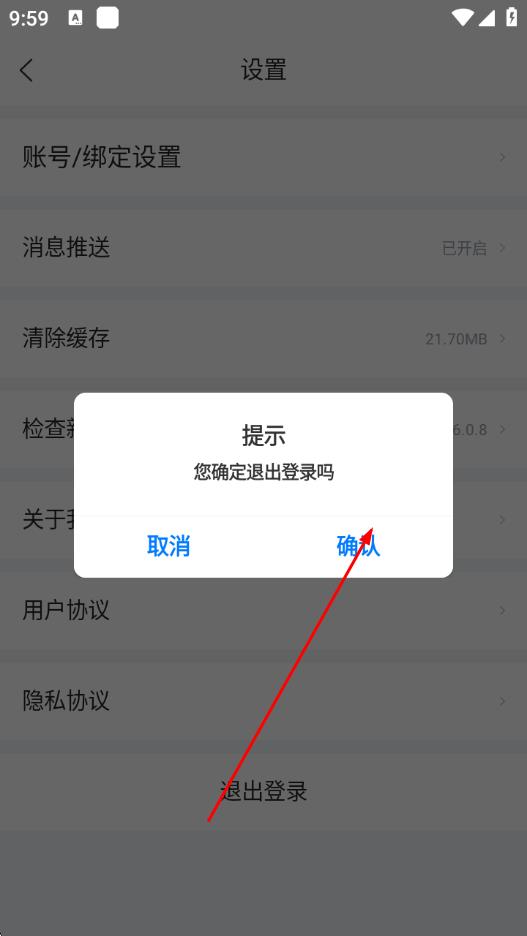 4、在彈出的您確定退出登錄嗎提示框中,點(diǎn)擊確認(rèn)按鈕,即可完成賬號退出操作。