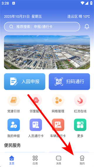 1、打開暢行石化APP,點(diǎn)擊底部導(dǎo)航欄的我的,進(jìn)入個人頁面。