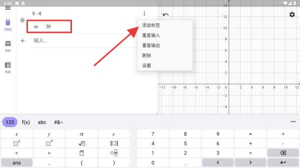 3、輸入后,點擊右側(cè)三個圖標的按鈕同時彈出計算結(jié)果和菜單欄,再次點擊添加標簽的按鈕。