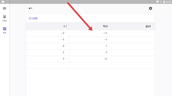 3、查看表格中x取-2、-1等值時(shí)f(x)的對(duì)應(yīng)結(jié)果,驗(yàn)證自定義函數(shù)的計(jì)算是否符合預(yù)期。