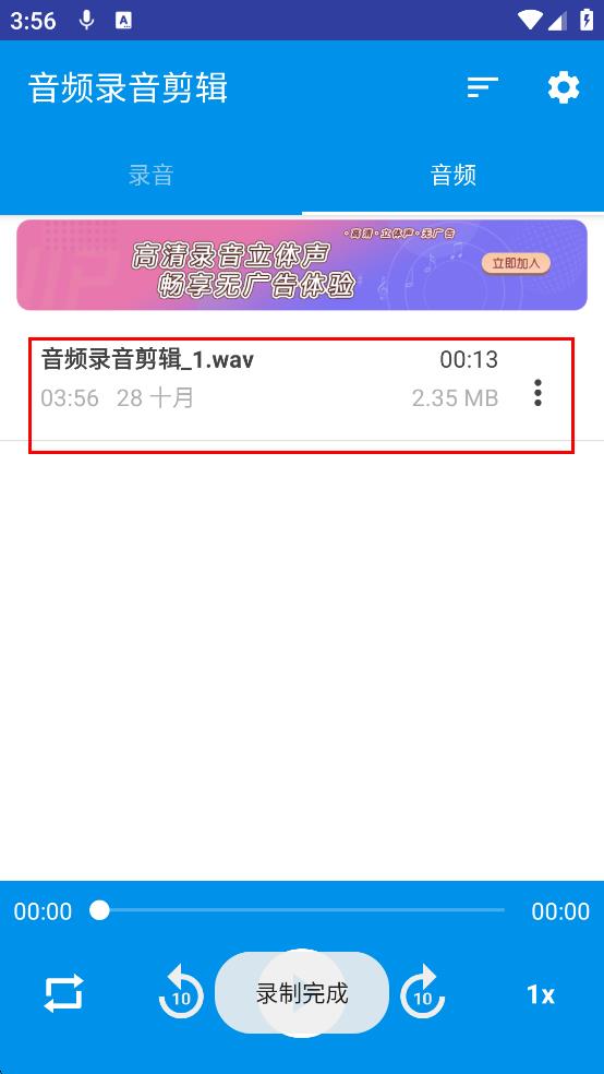 4、保存后即可在音頻列表中查看錄制的音頻文件。