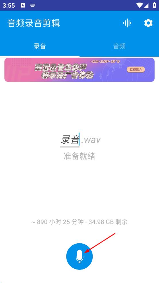 2、點擊底部藍色麥克風按鈕開始錄音。