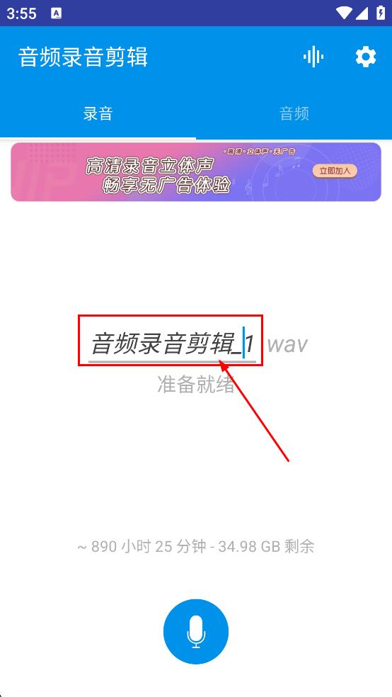 1、打開音頻錄音剪輯APP,輸入錄音文件名稱。