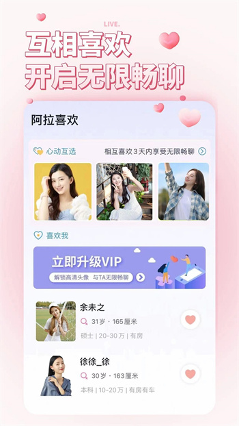2、首頁海量優(yōu)質(zhì)會員推薦,俊男靚女總能遇見心儀的那個TA;