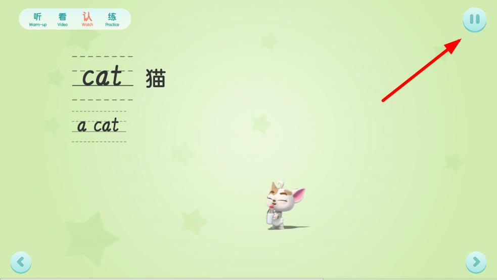 1、在洪恩ABC學(xué)習(xí)界面,點(diǎn)擊右上角的暫停按鈕,喚出控制欄。