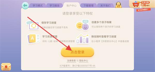 2、在登錄提示彈窗中,點(diǎn)擊下方點(diǎn)擊登錄選項(xiàng)。