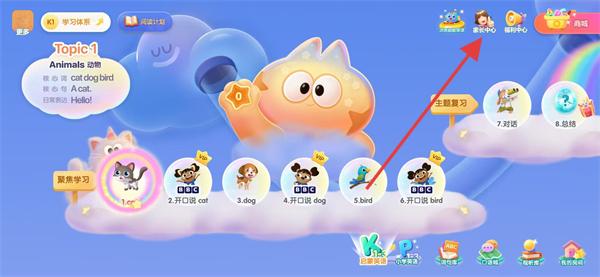 1、打開洪恩英語(yǔ)APP,點(diǎn)擊右上角的家長(zhǎng)中心。