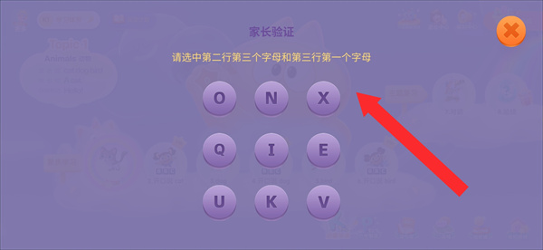 2、在家長(zhǎng)驗(yàn)證界面,根據(jù)提示選中字母完成驗(yàn)證。